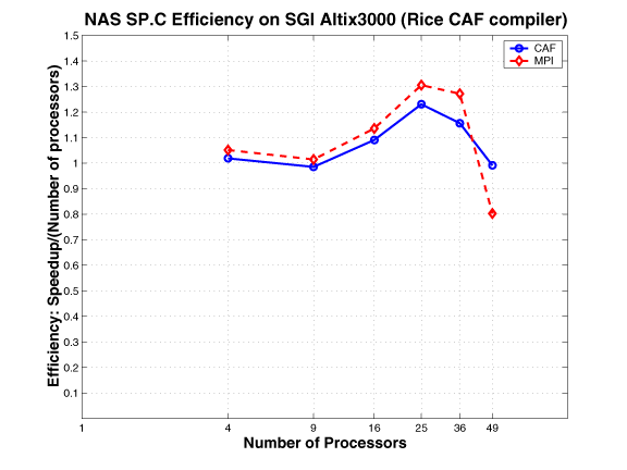Once we completed support for core CAF language features in our prototype CAF compiler, we undertook a study of several of the NAS parallel benchmarks to understand the interplay of CAF language, compiler, and runtime issues and their impact on the programmability, scalability, performance and performance portability of applications. From our colleagues Bob Numrich at University of Minnesota and Allan Wallcraft at Naval Research Lab, we received draft CAF versions of the MG, CG, SP, and BT NAS parallel benchmarks that they created from the MPI codes in the NPB version 2.3 re-lease. Analyzing variants of these codes gave us a better understanding of how to develop high performance programs in CAF. All of the CAF code transformations we describe in this section represent manual source-level tuning we applied to CAF sources for the NAS benchmarks to best exploit CAF language features for performance. It is our goal to enhance the capabilities of our prototype CAF compiler to apply such transformations automatically. Our aim is to generate high-performance code that meets or exceeds the performance of hand-coded MPI parallelizations from easy to write CAF source programs. We are in the process of adding program analysis to our compiler to support automating such transformations.